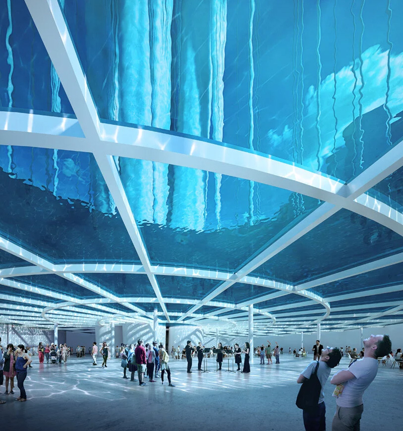 تيم sou fujimoto برج qianhai را مانند خوشه اي از جزاير آسماني مجسم مي کند. اين پروژه که به توده اي از آب هاي افشان (آبفشان) شباهت دارد، تصاويري خيالي از شهرهاي هوايي جهان آينده را تداعي مي کند. برج qianhai به لحاظ ساختاري توسط يک هسته متمرکز پشتيباني مي شود که براي حفظ تعادل هسته از کابلهاي کششي واقع در اطراف آن بهره برده مي شود. اثر حاصل يک صفحه افقي مستحکم در قسمت بالاي برج است که با نزديک شدن به قسمت پايين برجهاي خوشه اي به تدريج محومي شود. اين پروژه مجهز به سکويي براي تماشاي مناظر اطراف، فضاي نمايشگاهي، رستوران و کافه است.