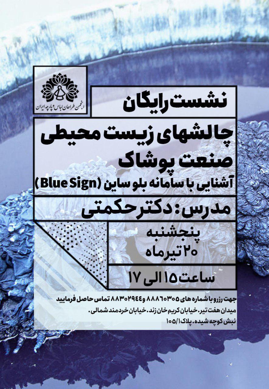 به گزارش گالري آنلاين، نشست اين هفته با موضوع "چالش هاي زيست محيطي صنعت پوشاک" (آشنايي با سامانه بلوساين Blue sign) از ساعت 15 الي 17 روز پنجشنبه 20 تيرماه با حضور دکتر حکمتي در انجمن طراحان لباس و پارچه ايران به نشاني ميدان هفت تير-خ کريم خان زند-خ خردمند شمالي-نبش کوچه شيده-پ 105/1-طبقه اول۱ برگزار مي شود.
