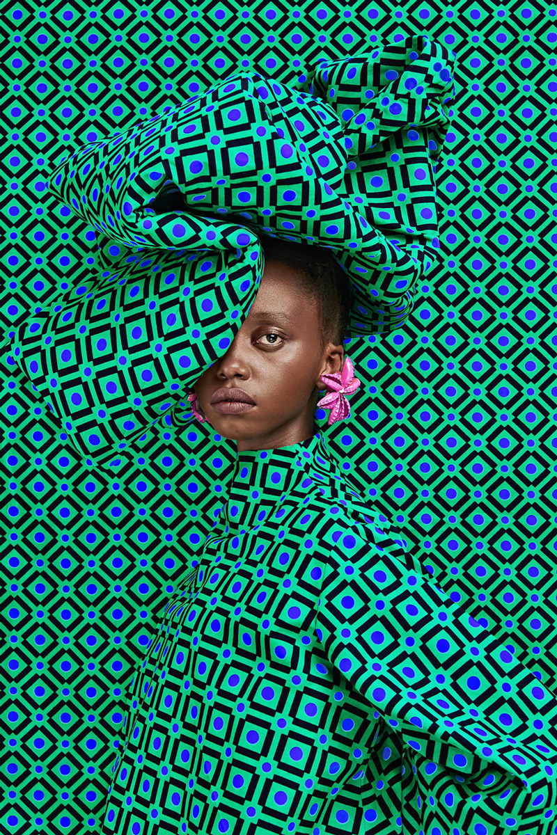 اين آثار که در مقابل پسزمينههاي پارچهاي جسورانه با الگوهاي پيچيده عکاسي شدهاند، بدنهاي سوژهها را زير لباسهاي کاملاً هماهنگ پنهان ميکنند و تنها سرها و دستان آنها قابل مشاهده است. اين عکسها بخشي از سري CAMO موريو هستند که به بررسي چگونگي تأثير فرهنگ بر خلق و مصرف هويتهاي فردي ميپردازد. با استفاده از پالتهاي رنگي غني و مدلهاي سنتي مو، موريو به جشن گرفتن ميراث آفريقايي خود پرداخته و در عين حال به استانداردهاي زيبايي و ادراک خود ميپردازد.