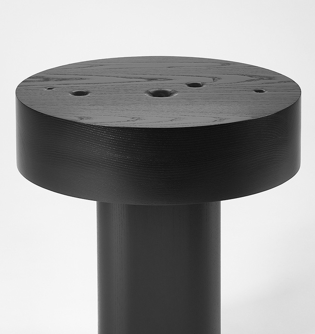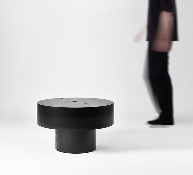 اين ميزها از چوبي سياهفام ساخته شدهاند و از تودههاي سنگين و دايرهاي شکل تشکيل يافتهاند که عظمت و بينهايتي کيهان را به تصوير ميکشند. انتخاب مواد و فرم به ساختار و نظم جهان اشاره دارد و به طرز ظريف، تنش ميان پايداري آن و طبيعت زودگذر زندگي را نشان ميدهد.