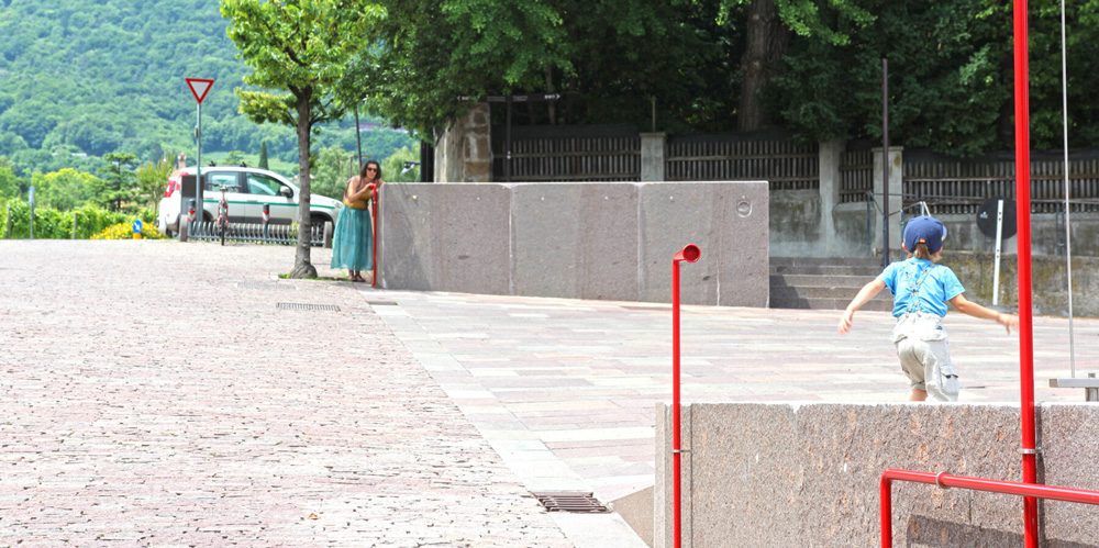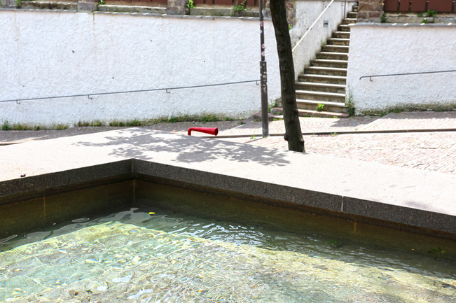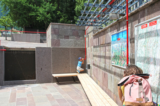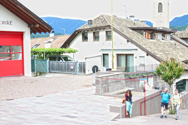در اين پروژه، فضاي ورودي و خروجي ايستگاه آتش‌نشاني بازطراحي شد تا مانعي که قبلاً توسط يک آب‌نماي قديمي ايجاد شده بود، برطرف شود و خودروهاي جديد آتش‌نشاني بتوانند به‌ راحتي تردد کنند. آب‌نماي موجود که در سال ۲۰۰۰ توسط معماران آنگونزه و شرر طراحي شده بود، کوتاه‌تر شد تا هم تناسب و محوريت معماري حفظ شود و هم مسير عبور خودروها آزاد گردد. همچنين نيمکت موجود در اين فضا گسترش يافت و جلوه‌اي شبيه به يک ميدان عمومي ايجاد کرد.