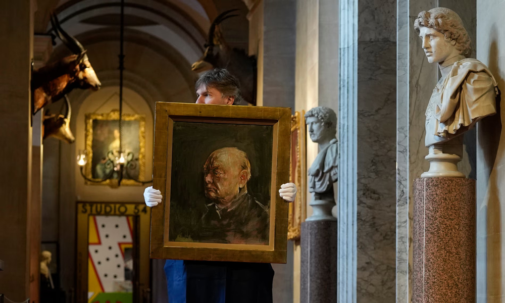 به گزارش گالري آنلاين به نقل از ايسنا، يک پرتره «وينستون چرچيل» که هفت دهه در مجموعه‌هاي خصوصي نگهداري شده است، در يکي از اتاق‌هاي «کاخ بلنهايم»‌ که محل تولد مشهورترين نخست‌وزير بريتانيا است، به نمايش گذاشته شده است تا بعد از مدتي به مزايده گذاشته شود.