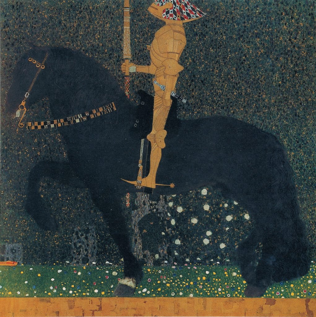 گوستاو کليمت در سال ۱۹۰۲ و دوباره در سال ۱۹۰۳، شواليهاي را با زره طلايي به تصوير کشيد. اولين بار در اثر معروفش «فريز بتهوون» که در نمايشگاه چهاردهم جداييطلبان وين در سال ۱۹۰۲ به نمايش گذاشته شد و سپس در نقاشي «زندگي يک مبارزه است (شواليه طلايي)» در سال ۱۹۰۳ که شواليهاي سوار بر اسبي سياه را نشان ميدهد. اما در همين سالها، کليمت به شکل خلاقانه و با آزادي بيشتر از طلا استفاده کرد و پسزمينهها و فيگورهايش را با ورقهاي طلا و رنگآميزي زينت داد و الگوهاي پيچيده تزئيني خلق کرد.