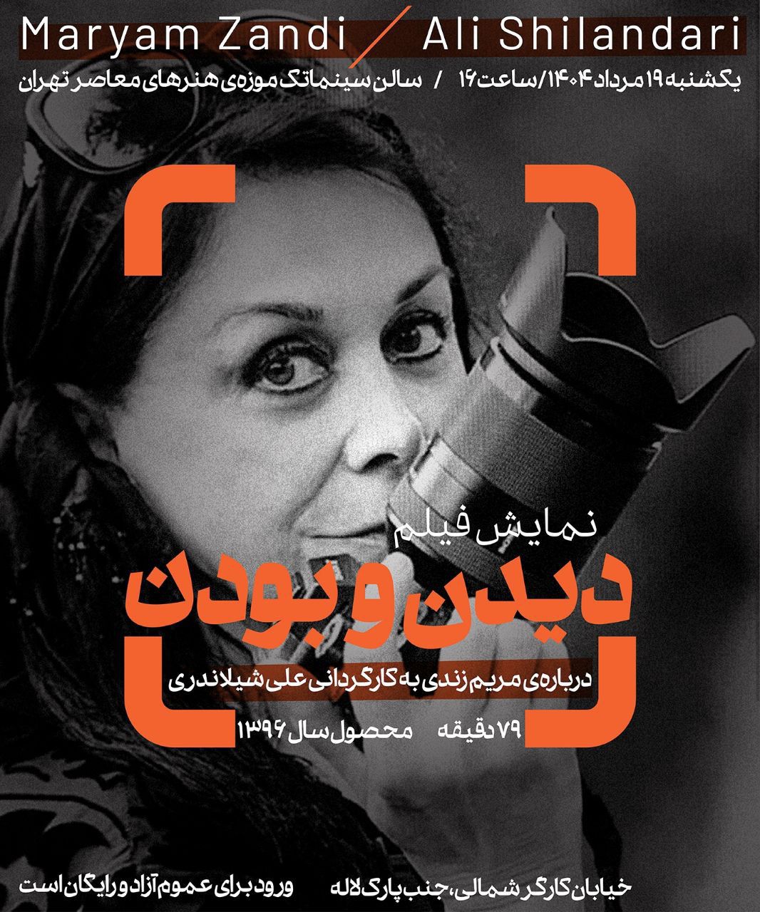 به گزارش گالري آنلاين به نقل از روابط عمومي و امور بين الملل موزه هنرهاي معاصر تهران، فيلم مستند « ديدن و بودن» به کارگرداني علي شيلاندري يکشنبه ۱۹ مرداد راس ساعت ۱۶ در سالن سينماتک به نمايش در خواهد آمد.