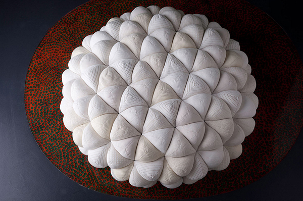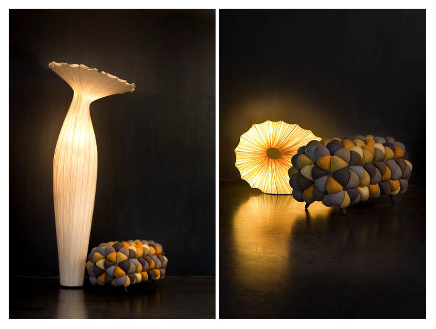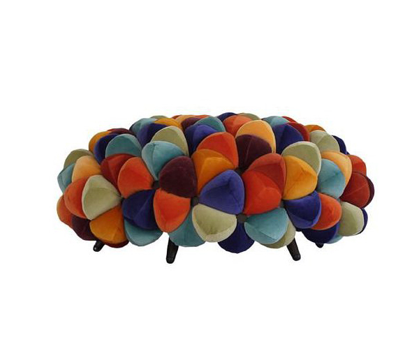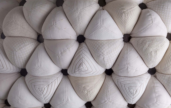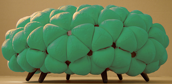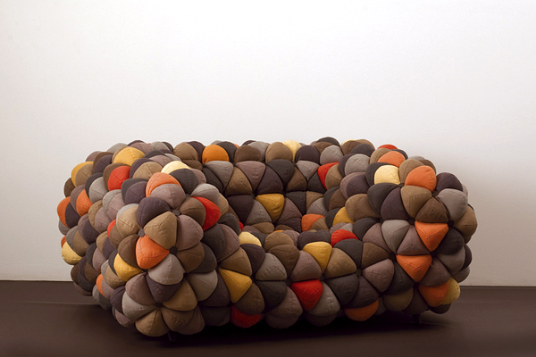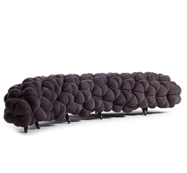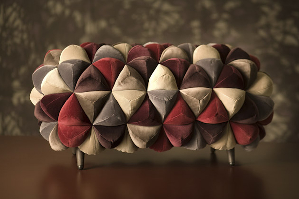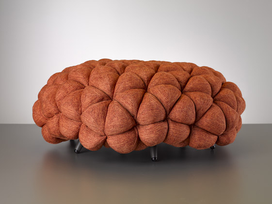 اين مبلمان از غلاف پارچه پوشيده شده است که سطوح سه بعدي را تشکيل مي دهند. قطعه ها با استفاده از توپ هاي نرم و زيبا که فضايي هندسي را تشکيل مي دهند، ايجاد مي شوند.