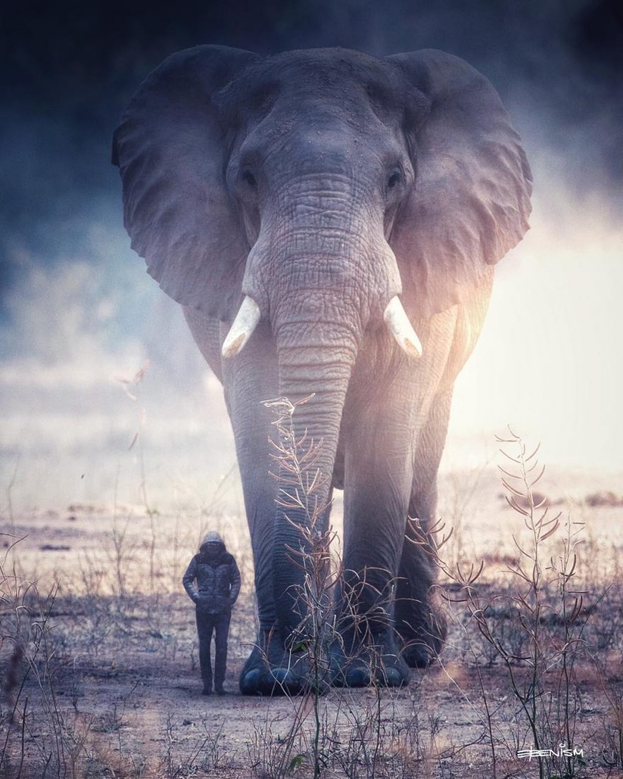 حيوانات غول پيکر و انسان هاي کوچک موضوعي مشترک در عکس هاي او هستند. حرمت پادشاهي حيوانات هميشه براي وي الهام بخش بوده است و مسائل مربوط به نابودي و انقراض گونه هاي حيواني توسط تهاجم انسان به زيستگاه هاي بومي، او را بر اين داشته که اين تصاوير را خلق کند، تا حس حيوان دوستي را در انسان پديدار کند.