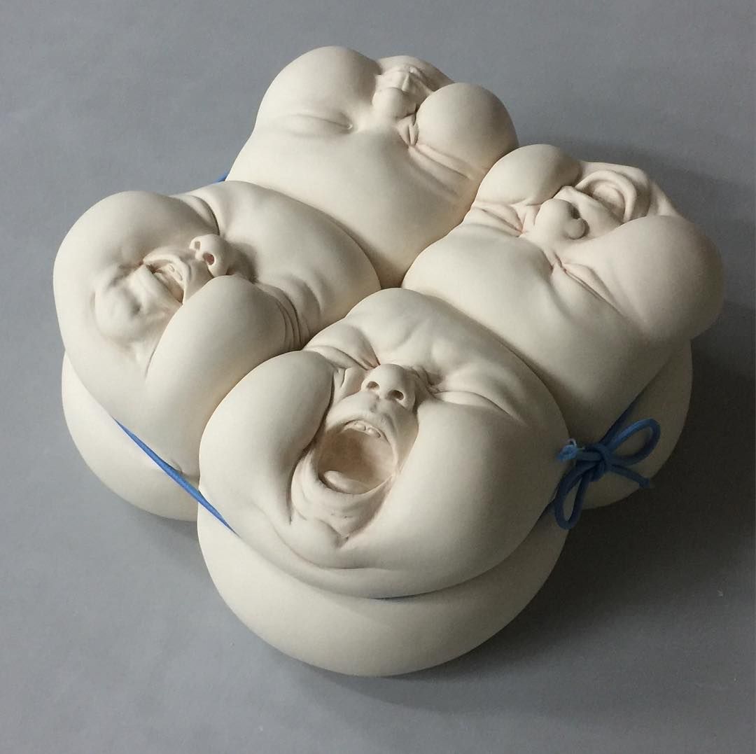 وي در اين مجموعه از گل رس ساده و بدون لعاب استفاده مي کند و از جزئيات معمولي مانند رنگ ، مو و پوشاک جلوگيري مي کند تا توجه بيننده را بر روي عبارات قابل قبول جهاني از هر يک از موضوعات تصويري خود معطوف کند.