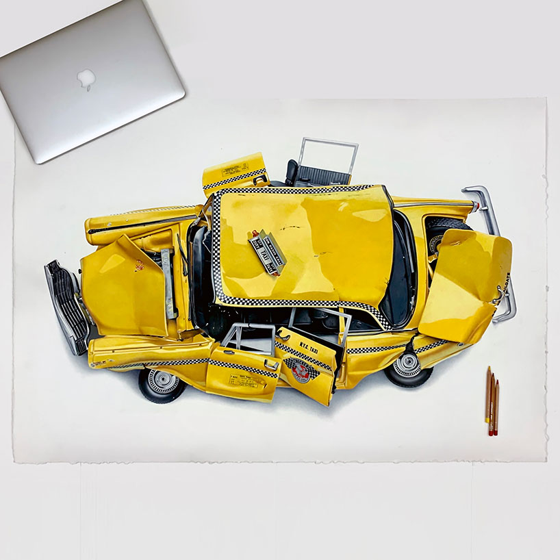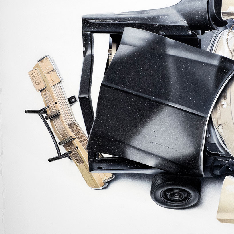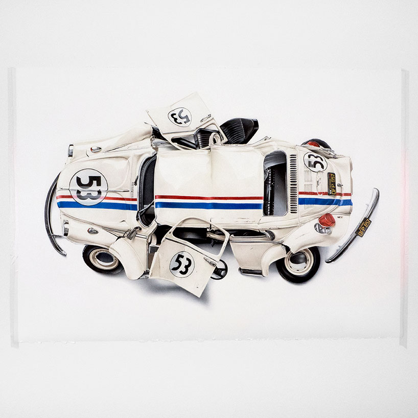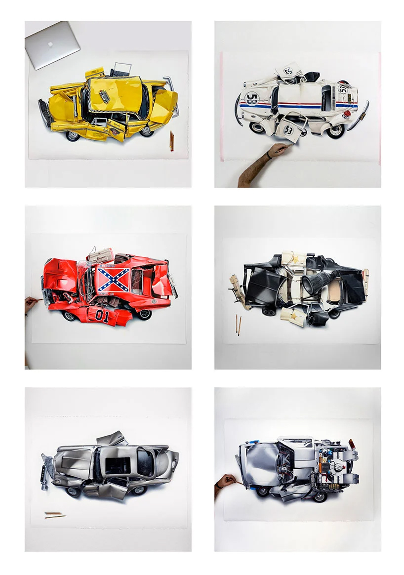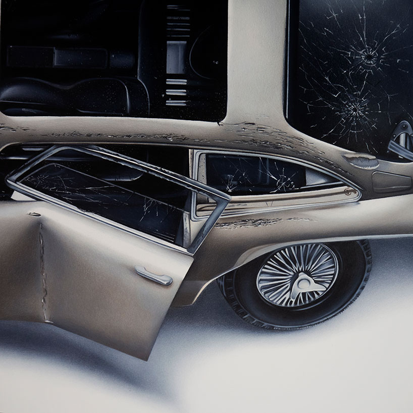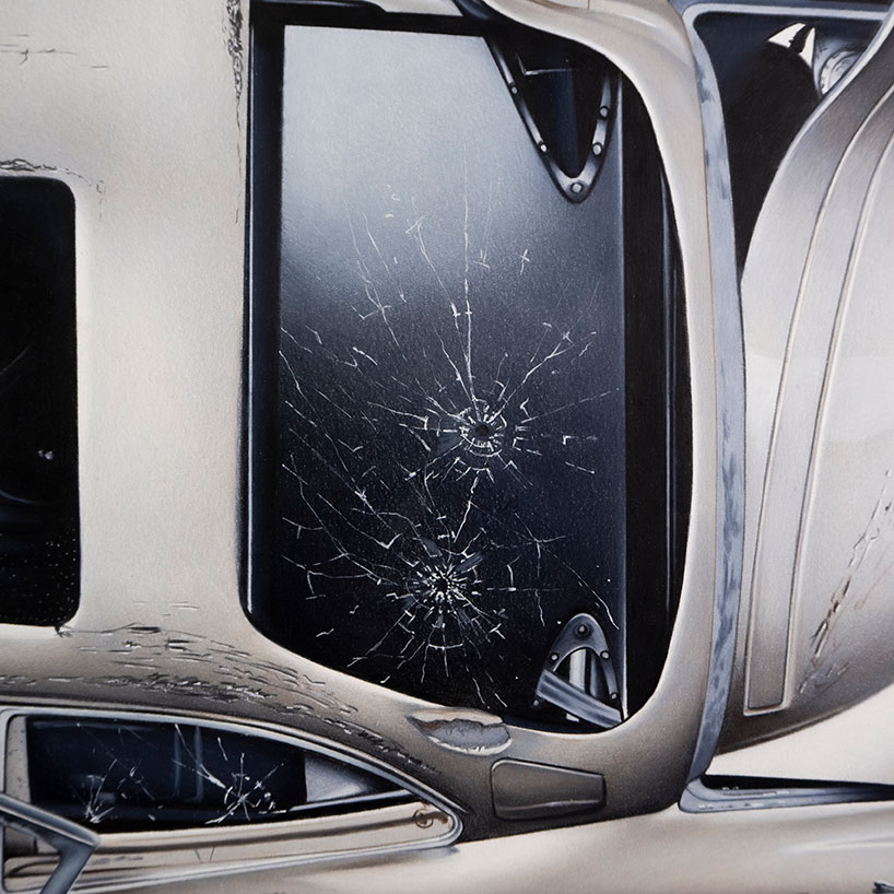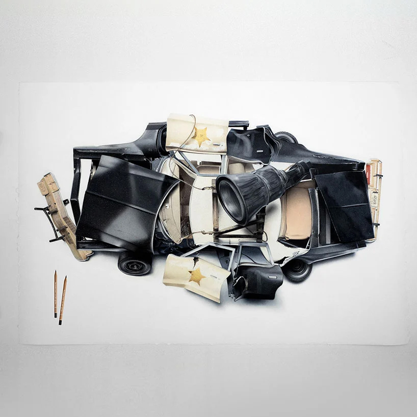 به گزارش گالري آنلاين، هنرمند نقاش alessandro paglia، در جديدترين مجموعه خود ماشين ها را به شکل خرد شده را باز تعريف ميکند. هر يک از اتومبيل ها که از زاويه ديد بالا ترسيم شده اند طوري مجسم شده اند که گويي توسط يک جسم خارجي مسطح شده باشند.