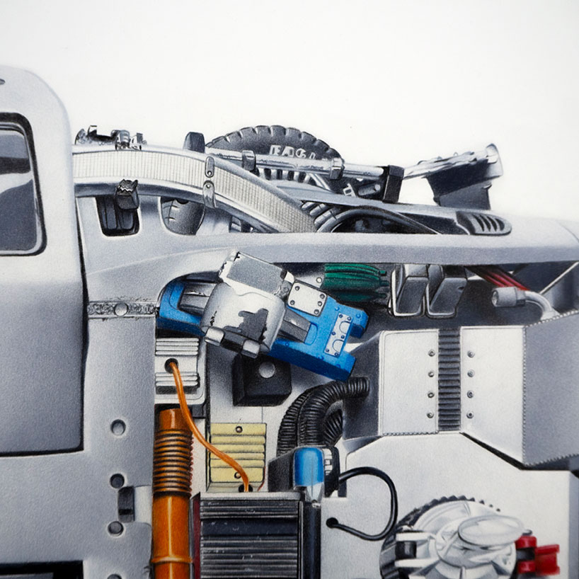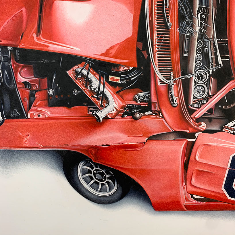اين هنرمند اهل ميلان پيش از اين به خاطر نقاشي هاي دقيق جوهري اتومبيل هاي کلاسيک به رنگ سياه و سفيد به رسميت شناخته شده بود. در اين مجموعه ، paglia توانايي خود در اجرا با مدادهاي رنگي نيز نشان مي دهد.