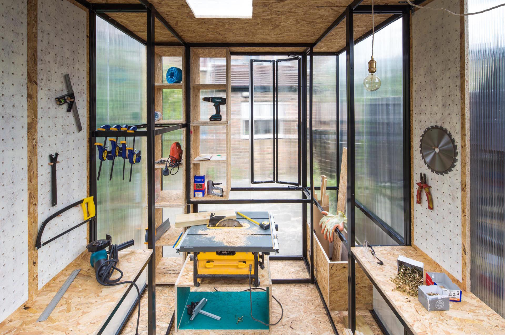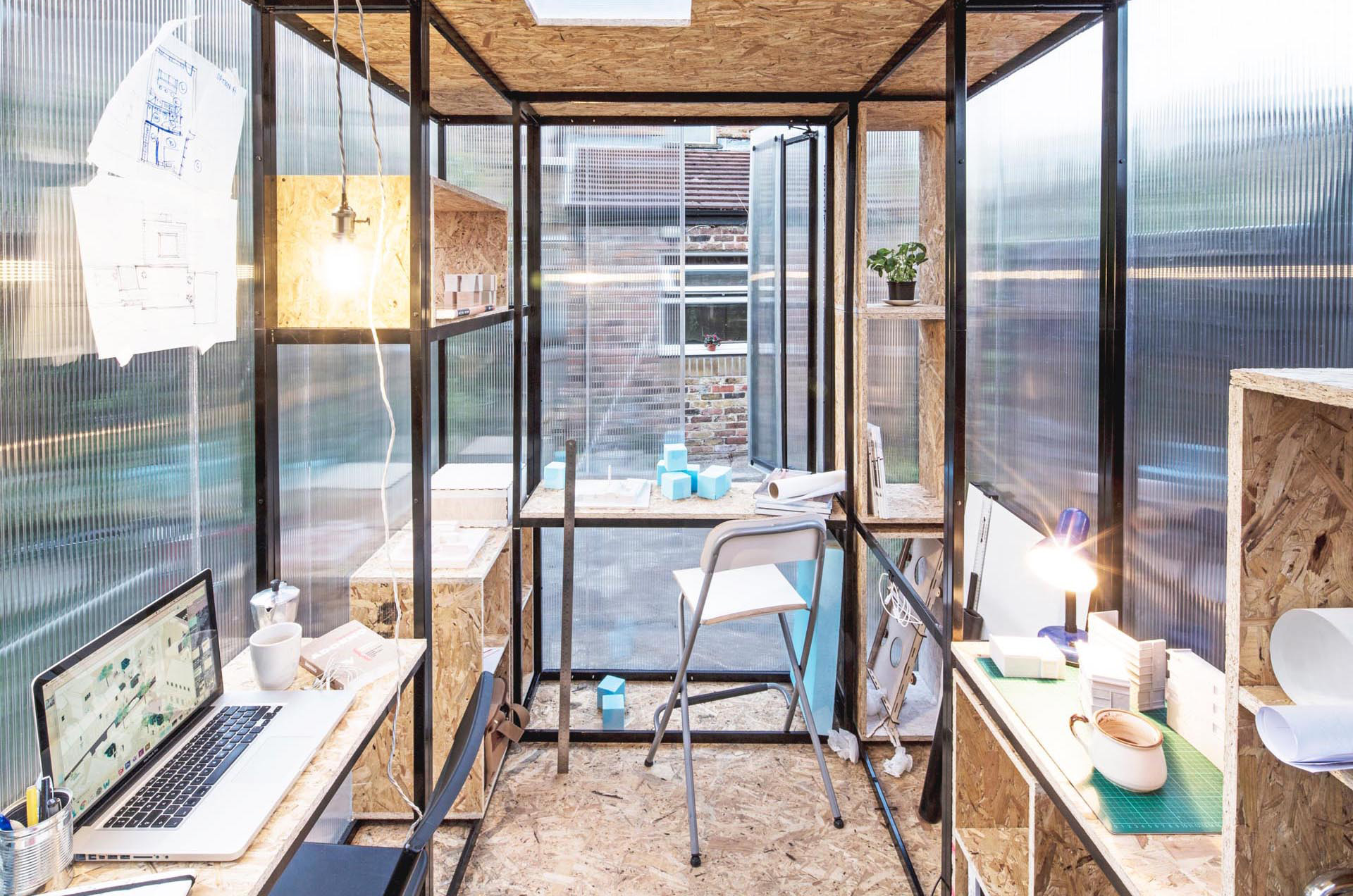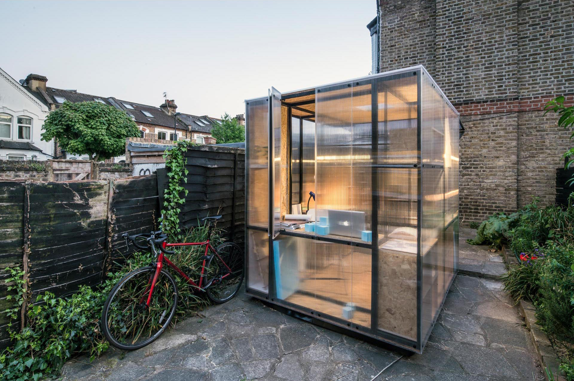 ديوارهاي شفاف ورود نور طبيعي به داخل اين ساختمان کوچک را که به عنوان دفتر کار خانگي يا کارگاه طراحي شده است ممکن مي سازد.
