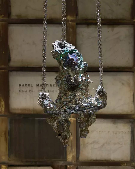 Heidi Lau, installation view of Receptor, 2022, in “Gardens as Cosmic Terrains” at Green-Wood Cemetery, 2022.