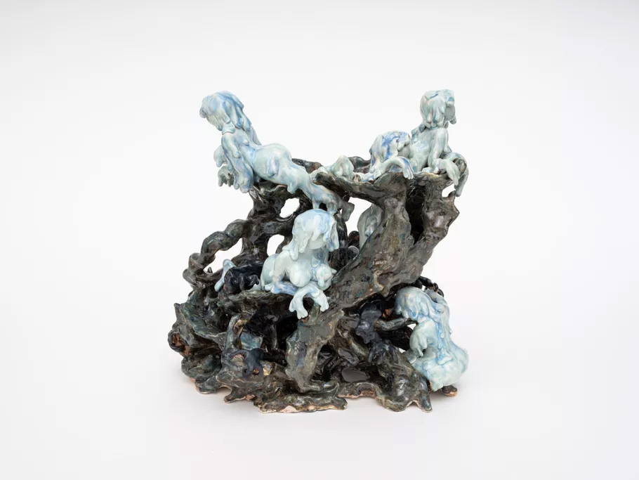 Heidi Lau, installation view of Creatures of the Unyielding Wind II, 2022, in “Gardens as Cosmic Terrains” at Green-Wood Cemetery, 2022.