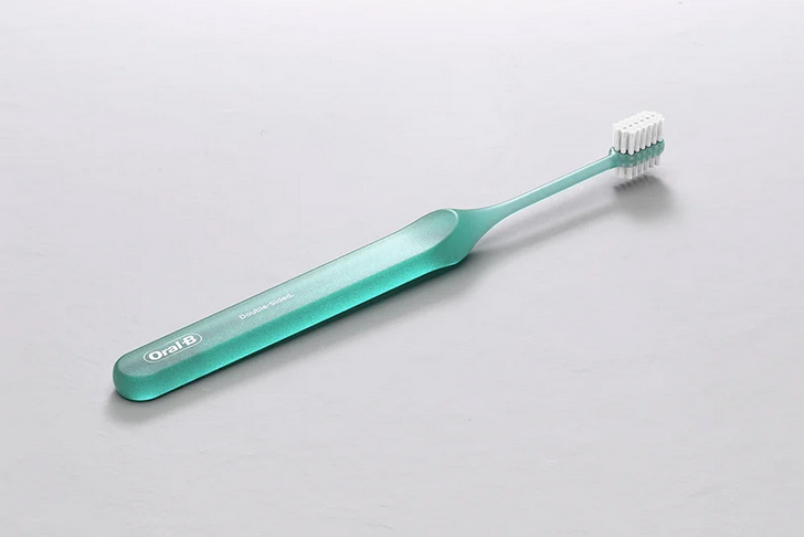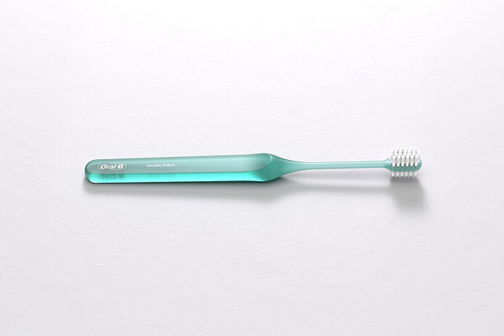 اين مسواک دو طرفه از پرزهايي در هر طرف تشکيل شده است که دندانهاي آسياب بالا و پايين، پرمولرها و دندان نيش را با يک حرکت مسواک ميزنند. علاوه بر اين، دسته ارگونوميک امکان کنترل دقيق و کارآمد را فراهم ميکند.»