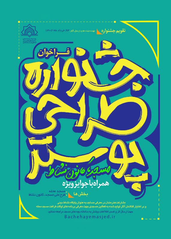 عنوان اصلي پوستر «مسجد، کانون نشاط» است که حتما بايد درج شود. (تايپوگرافي امتياز ويژه دارد)