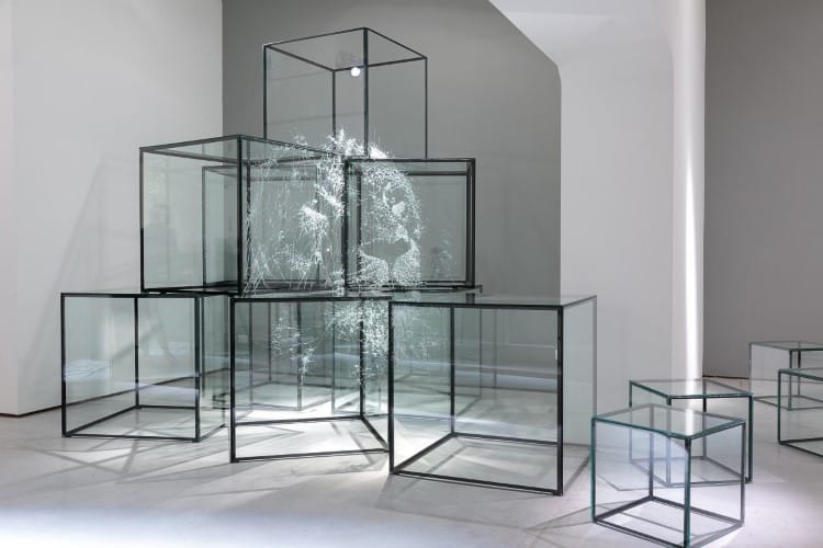 آثاراين هنرمند با دسته بندي ورقه هاي شيشه و پخش پرتره ها در سرتاسر آنها، جان تازه اي گرفته اند. در يکي از چيدمان ها، مکعبهاي شيشهاي به طرز ماهرانهاي، پرتره سهبعدي يک شير را خلق کرده است و در چيدماني ديگر چندين پرتره با جمجمه ها تلفيق شده اند تا چرخه زندگي را تفسير کنند.