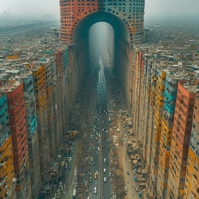 خط ديگر، تصويري قرينه اما نقطه مقابل شهر خطي NEOM است: شهري پر ازدحام و شلوغ که با المان هاي تراکم و واحد هاي اداري برجسته شده است.
