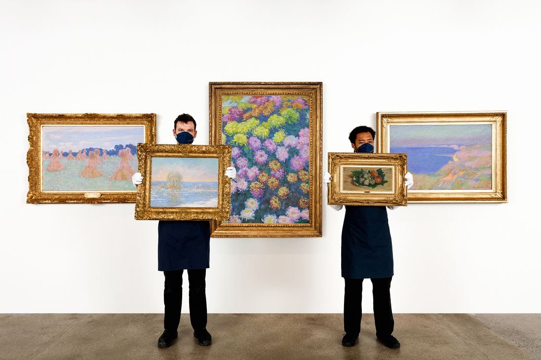 به گزارش گالري آنلاين، اين آثار محور کار اين هنرمند را از يک نقاش امپرسيونيست تا پدر اکسپرسيونيسم انتزاعي ترسيم ميکند. اين مجموعه تصويري از نحوه برخورد مونه با مفهوم ثبت رنگ و نور بر روي بوم به روشي مدرن و انتزاعي، از طريق طيفي از نقوش کليدي ترسيم مي کند. از يک بوم پر از گل که نشاندهنده نقاشيهاي معروف نيلوفر آبي مونه است، تا تصويري ريتميک از دستههاي دانهاي که در کنار هم قرار گرفتهاند، و دو منظره نقاشي شده در شرايط آب و هوايي متفاوت در انتهاي فصلها. آثار همگي مربوط به سال 1900 هستند. مونه تأثير عميقي بر هنرمندان و جنبشهاي بعدي گذاشت. اين نقاشيها در مجموع با قيمت 50 ميليون دلار (35 ميليون پوند) در حراج عصر مدرن و معاصر ساتبيز در لندن در 2 مارس 2022 عرضه خواهند شد.