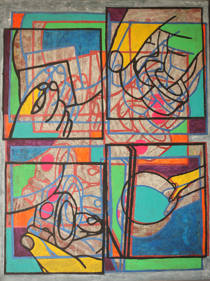 نقاشي هاي اين مجموعه حدودا از دو سال پيش در ابعاد مختلف 20×30 ، 30×40 ، 80×60 ، 70×100 و 70×140 سانتيمتر آغاز شد و حدود 15 تابلو اجرا گرديد و همچنان امکان اضافه نمودن اثر جديد به مجموعه وجود دارد؛ براي نقاشي اين مجموعه از رنگ اکرليک به عنوان رنگ پايه استفاده شده است و نقاشي ها روي بوم اجرا شده است. مفهوم اين مجموعه اشاره به شلوغي ذهن انسان در هنگام تصميم گيري براي ابعاد مختلف زندگي و دچار ترديد و دودلي شدن دارد.