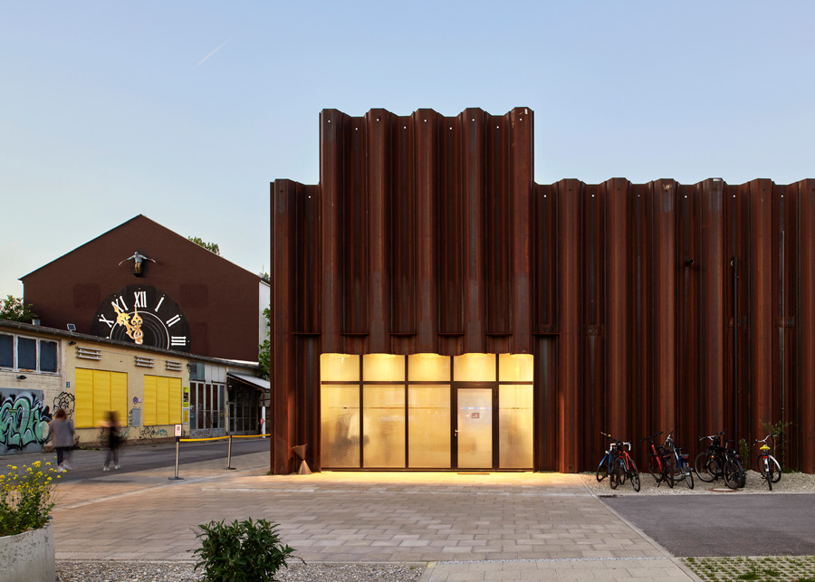 Sheet piling is commonly used in construction pits and harbors; as façade elements for the temporary renovation of the Munich theater schwere reiter, they lend the venue a real charisma and emphasize the temporary character of the building, the use of which has been planned for ten years. In addition, the elements can be installed during a short construction period as well as with a low energy cost, and the majority can be reused after dismantling.