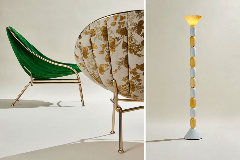Ginori 1735 Domus collection by Luca Nichetto with Rubelli (left) and Barovier&Toso. Courtesy of Salone del Mobile