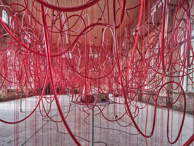 به گزارش گالري آنلاين، چيهارو شيوتا، بهخاطر چيدمان هايش با استفاده از نخها شناخته ميشود، او مفاهيم انتزاعي را با اشياء روزمره ادغام ميکند. اين چيدمان يک موجود زنده را تداعي ميکند که در بالاي سر بازديدکنندگان معلق است و توسط شبکه پيچيده اي از خطوط قرمز به هم متصل شده است.