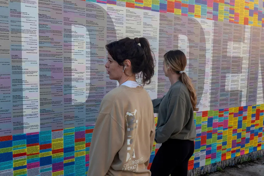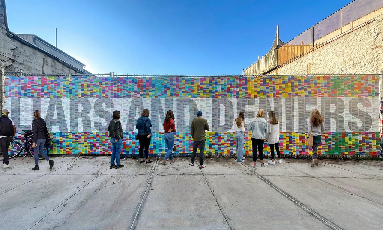 به گزارش گالري آنلاين، فيل بوهلر اخيراً يک بنر بلند 50 فوتي به نام ديوار دروغگويان و منکران نصب کرده است که حول محور "دروغ بزرگ" دونالد ترامپ مبني بر دزديده شدن انتخابات رياست جمهوري 2020 است. اين پروژه متشکل از دهها هزار دروغي است که دونالد ترامپ از زمان انتخاب شدنش به عنوان رئيسجمهور گفته است و به دروغ بزرگ ترامپ ختم ميشود.
