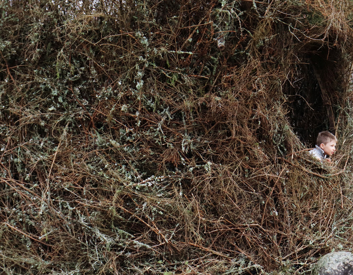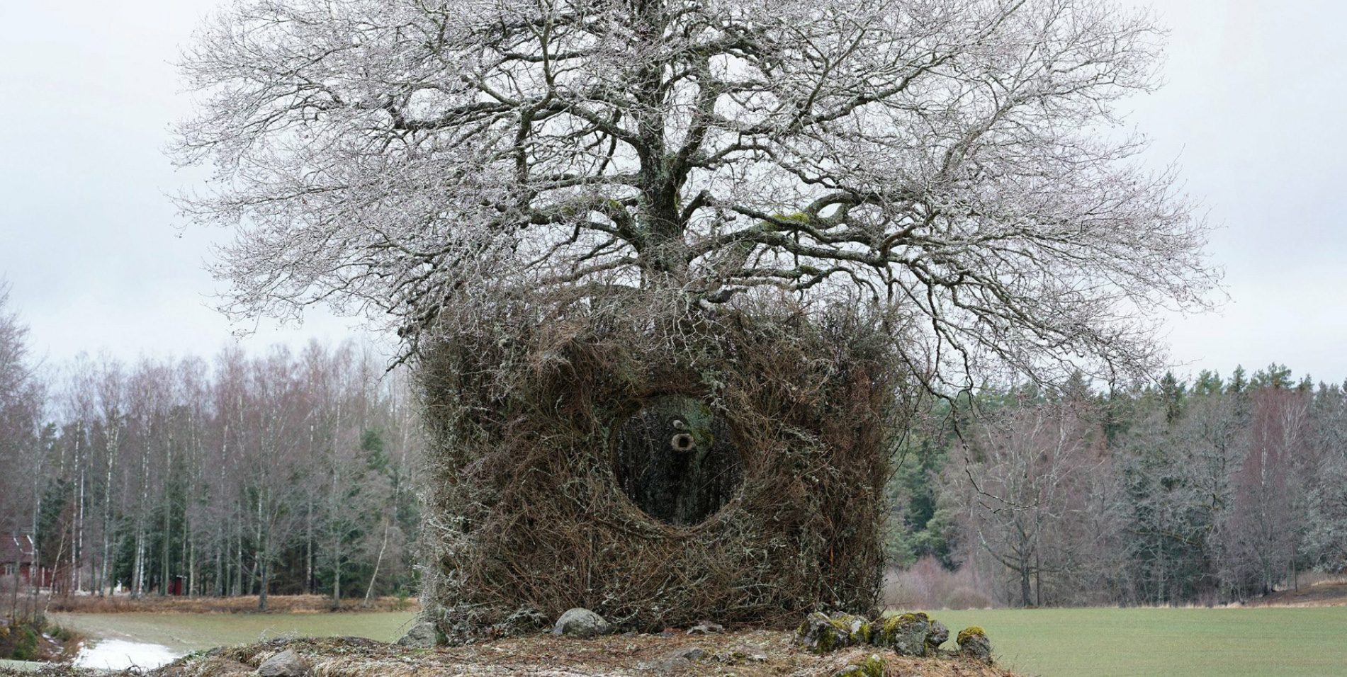 براي اولين اثر هنري، اين تيم شاخه هاي مرده را از جنگل اطراف جمع آوري کرد.آنها را در هم آميختند و يک لانه غول پيکر را تشکيل دادند که دور تنه آن مي پيچد. براي آشکار کردن بخشي از بدنه، يک دهانه دايره اي ايجاد کردند که کنجکاوي رهگذران را برمي انگيزد و آنها ميل به کشف آنچه در داخل است را احساس مي کنند. بازديدکنندگان مي توانند در لانه بپرند و اثر هنري را از درون به بيرون تجربه کنند.