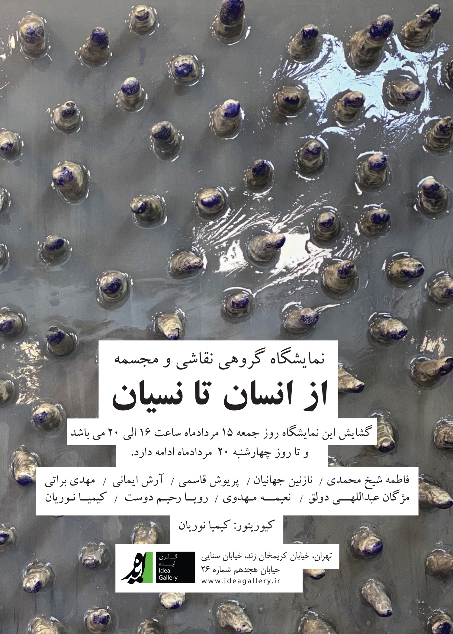 "از انسان تا نسيان" عنوان نمايشگاه گروهي نقاشي و مجسمه است که به کيوريتوري کيميا نوريان از روز جمعه 15 مردادماه در گالري ايده برپا مي شود.
