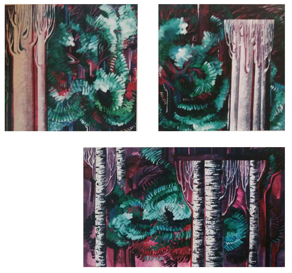 انبوهي از اين آثار را ميبيني که هم چنان عناصر ((درخت ، پنجره ،خانه وانسان)) ساده شده اند تا با مختصر اشاره، چيزي را به ما نشان دهند که مقصود نهائي نقاش است. آن چيز، همان ((جوهرزيبائي تصويري)) است که نقاش خصوصا در طرح هايش باترکيب هاي ساده شده فرم هاي انتزاعي در جستجوي آن است. او در اين جستجوي پيگير، براي دست يابي به کمپوزسيون دلخواه، با وسواس به ساختمان اساسي فرم هايش توجه دارد. در واقع او ساختارگرائي است که ساخنمان اثرش را در بيان تصويري ايجاز گونه و اختصار ميطلبد.