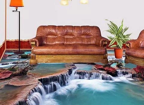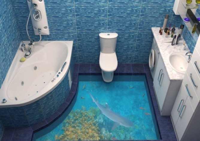 بيشترين کاربرد کفپوش هاي سه بعدي در فضاهايي مانند حمام وسرويس بهداشتي مي باشد که ظاهر شگفت انگيز و باورنکردني به آن مي بخشد، توجه داشته باشيد که مي توانيد از کفپوش سه بعدي به عنوان بخشي از فضاي کف استفاده کنيد درست همانند تصوير، با اين کار مي توانيد ظاهر واقعي و شفاف تري به کفپوش فضاي سرويس بهداشتي و يا حمام خود ببخشيد.