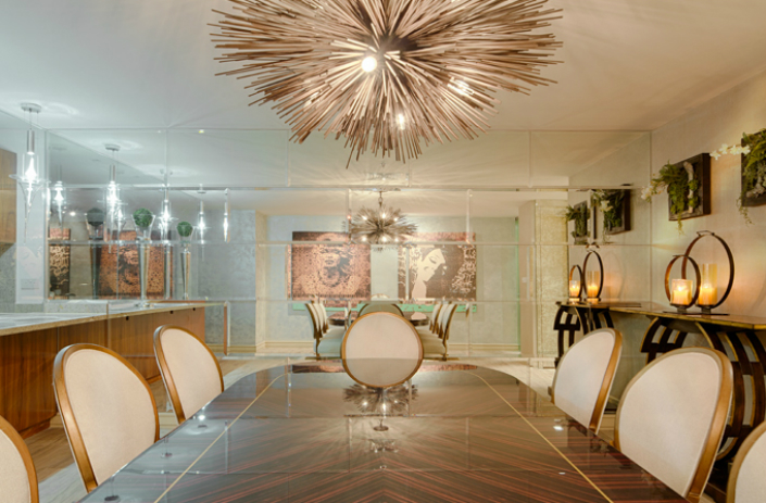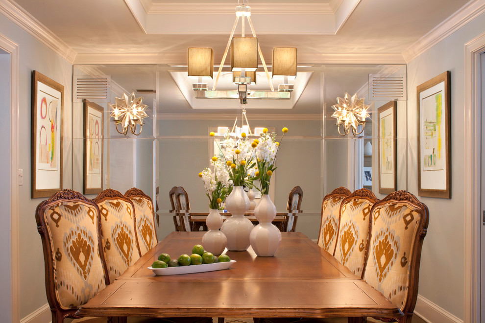 البته اين فرمول براي فضاي نهار خوري استفاده نمي شود زيرا در فضاي نهار خوري لوستر بايد در بالاي ميز نهار خوري قرار بگيرد و اندازه ي آن بايد حدود نصف و يا دو سوم عرض ميز نهارخوري باشد. اگر در فضاي نهار خوري از بزرگ ترين ابعاد ممکن براي لوستر استفاده مي کنيد حتما ارتفاع نصب لوستر را بلند کنيد و آن را نزديک سقف نصب کنيد تا بزرگي آن خللي در زيبايي فضاي طراحي شده شما ايجاد نکند.