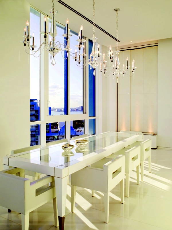 بهتر است فاصله ي لوستر با ميز نهارخوري حدود ۷۵ تا ۹۰ سانتي متر باشد تا هم ميز و چيدمان روي ميز شما را به زيبايي روشن کند و هم از احتمال برخورد سر با لوستر جلوگيري شود .