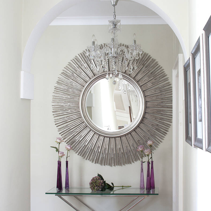 ۵٫ آينه خورشيدي بالاي کنسول. آيا ميز کنسولي داريد که بالاي آن خالي است؟ آينه خورشيدي شيکي بخريد و آن را بالاي کنسول نصب کنيد.