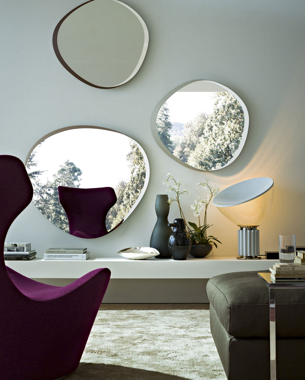 نصب آيينه همچون يک تابلو نقاشي. در خانه‌اي با طراحي مدرن يک آيينه ميتواند نقشي را که يک اثر نقاشي ميتواند داشته باشد ايفا کند.