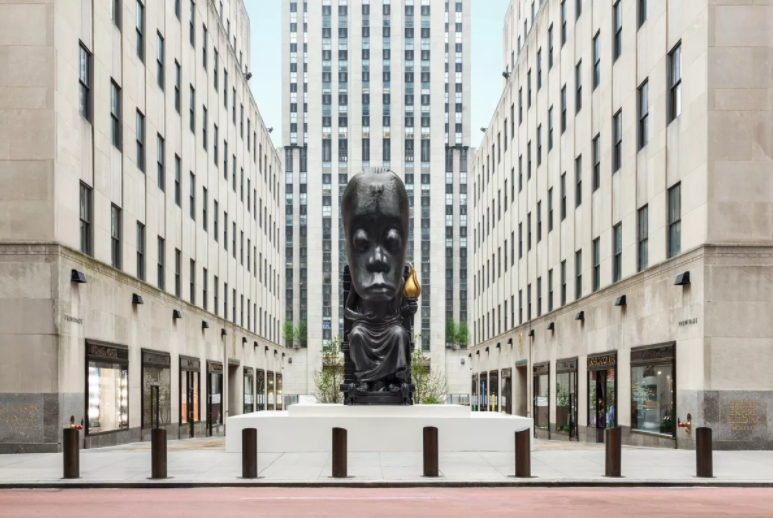 Sanford Biggers در بهار 2021 مرکز راکفلر را با مجسمه يادبود Oracle (7.64 تن برنز ريختهشده ايالات متحده) تصاحب کرد. اين اثر الهامبخش، لحظهاي کليدي در مسير کوويد-19 شهر نيويورک با شروع مجدد بازگشايي، با هواي گرمتر نشاندهنده يک نقطه عطف کليدي پس از يک زمستان طاقتفرسا براي همه نيويورکيها بود. بيش از يک دهه در چشم انداز و برنامه ريزي، با صندوق توليد هنري، Oracle، با ارتفاع 25 فوت، جديدترين در مجموعه مجسمه هاي Biggers "Chimera" است که ماسک هاي آفريقايي و چهره هاي اروپايي را ادغام مي کند. بدن نشسته از معبد باستاني زئوس الهام گرفته شده است، در حالي که سر بر اساس ماسک ها و مجسمه هاي ديگر از فرهنگ هاي مختلف آفريقايي، از جمله هنر لوبا و فرهنگ ماسايي ساخته شده است.