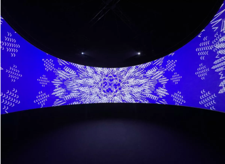 آبي بي نهايت که به عنوان بخشي از جشنواره سالانه نور، جشنواره اي از تاسيسات نور و هنر عمومي که در چندين مکان در سراسر رياض نمايش داده مي شود، به نمايش گذاشته شد؛ و يک تجربه همه جانبه ارائه کرد و تعداد زيادي از بازديدکنندگان را به خود جذب کرد. با ورود به اين سازه، مخاطب به جهاني قدم گذاشت که در آن شدت صفحه آبي با دقت رياضي انتزاعات خطي مشخص شده است.