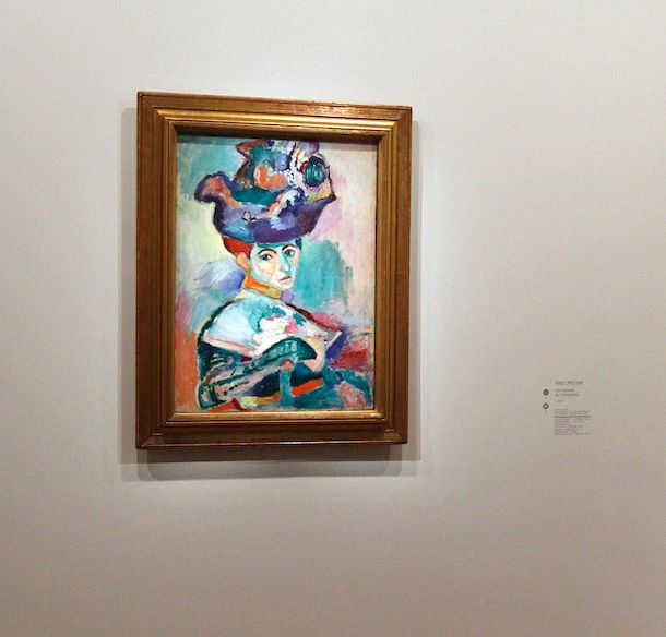در اواخر همان سال، Matisse با اثر ، پرتره نيم تنه Woman with a Hat، براي Salon d'Automme در پاريس، باعث هرج و مرج شد. Amélie همسرش براي اين تصوير نشست و مانند افراد در طبقه اجتماعي متوسط با دستکش، باد بزن و کلاه شاپو داراي جزئيات، مجهز شده بود. نقاشي از تکه هاي بزرگ و نامنظمي از رنگ هاي عجيب و غريب تشکيل شده بود، که الهام بخش منتقد Louis Vauxcelles بود تا Matisse و Derain—که يک اثر expressive مانند Matisse ارائه کرده بود—را fauves يا "جانوران وحشي" خطاب کند و در نتيجه به ايجاد يک جنبش متهم کند . Woman with a Hat اين اثر توسط Gertrude و Leo Stein، که از داوران برجسته پاريس بودند، خريداري شد.
