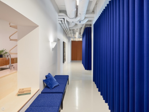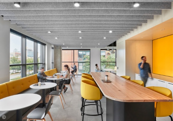 در نظر گرفتن توزيع گسترده يا دايرهاي به جاي توزيع خطي براي فضاهاي بيش از چهار نفر ميتواند يک کانال ارتباطي باز را تسهيل کند که در آن همه شرکتکنندگان بتوانند يکديگر را ببينند. اتاقها و مبلمان متحرک ميتوانند به سازماندهي اتاقها با اين خصوصيات کمک کنند. از نظر تحرک، توليد مسيرهايي که به افراد امکان ميدهد هنگام راه رفتن به يکديگر نگاه کنند و با خيال راحت از فضا عبور کنند، حياتي است. رمپها، درهاي اتوماتيک، المانهاي امنيتي گرافيکي و علائم در اين مورد به همان اندازه نيز مفيد هستند.