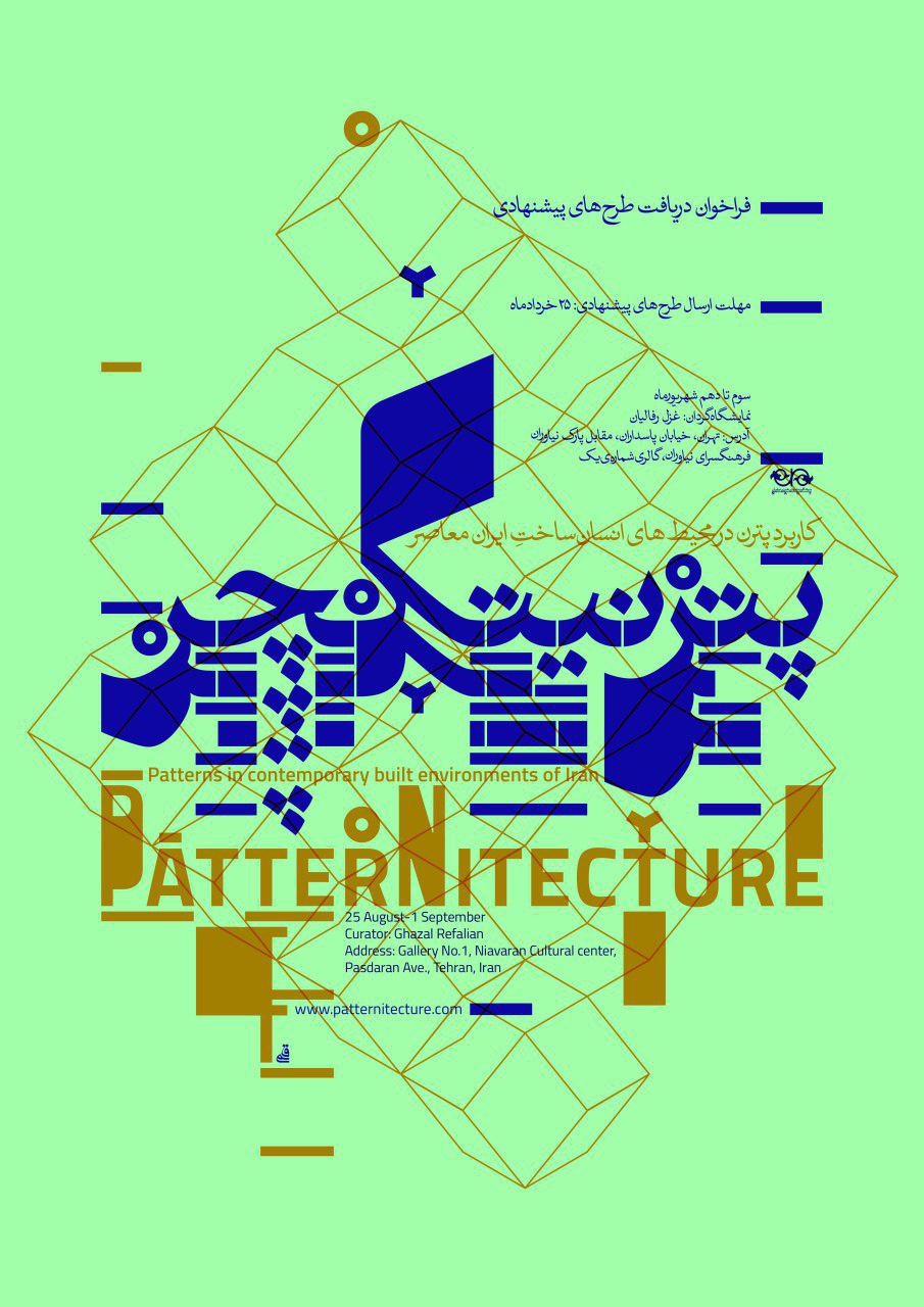 اين مهم ما را بر آن داشت که در جست و جوي روايتي از پترنها در محيط هاي انسان ساخت ايران معاصر برآييم و ابعاد اين حضور را در قالب يک نمايشگاه واکاوي نماييم. رويداد پترنيتکچر بر آن است تا فضايي براي انديشيدن و کاوش در پترنها در ايران معاصر فراهم آورد و فرصتي است براي گردهمايي طراحان ايراني در رشته هاي گوناگون هنري و معماري که در شکل گيري محيطه اي انسان ساخت نقش دارند، تا با ارائه آثار خود سهمي در مستندسازي، بيان ايده ها، مطالعه و نقد گرايشات و کاربردهاي پترن در آثار طراحان معاصر داشته باشند. در ديگر سو، اگرچه تجربه محيطي از ارتباط متقابل رشته هاي گوناگون شکل ميگيرد و اما به طور معمول خالقان اين آثار کمترين تعامل را با يکديگر دارند. اين نمايشگاه ميتواند گامي نخستين براي درک تاثيرات برقراري چنين تعاملاتي ميان حرفه هاي گوناگون دخيل در شکل گيري محيطهاي انسان ساخت باشد.