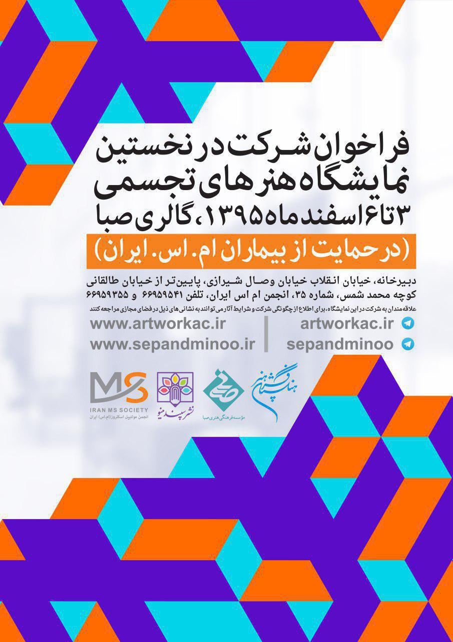 نخستين نمايشگاه هنرهاي تجسمي با مشارکت انجمن ام اس ايران و فرهنگستان هنر از 3 تا 6 اسفند ماه در محل گالري صبا واقع در خيابان طالقاني بعد از ميدان فلسطين خيابان برادران مظفر گالري صبا برگزار مي شود.