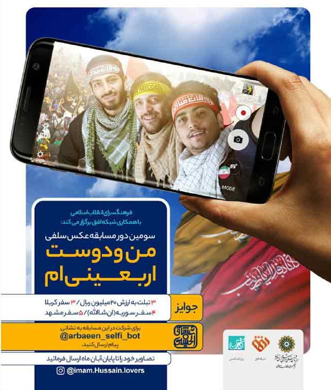 سومين مسابقه عکس سلفي «من و دوست اربعينيام» از ۱۳ آبانماه کار خود را آغاز کرده است و تا پايان آبان ماه آثار شرکت کنندگان را دريافت مي کند.