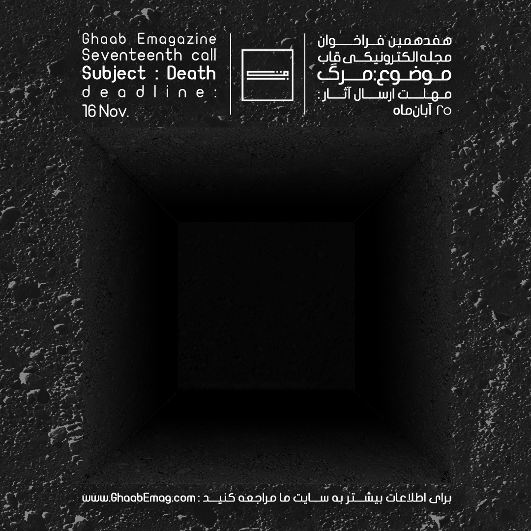 فراخوان مجله‌ي الکترونيکي قاب به‌منظور ايجاد فضايي براي ارائه‌ي آثار هنرمندها تعريف شده است که هر ماه آثار ارسال‌شده با توجه به موضوع از پيش‌ تعيين‌شده (مرگ) از سوي قاب و قوانين مجله منتشر مي شود.