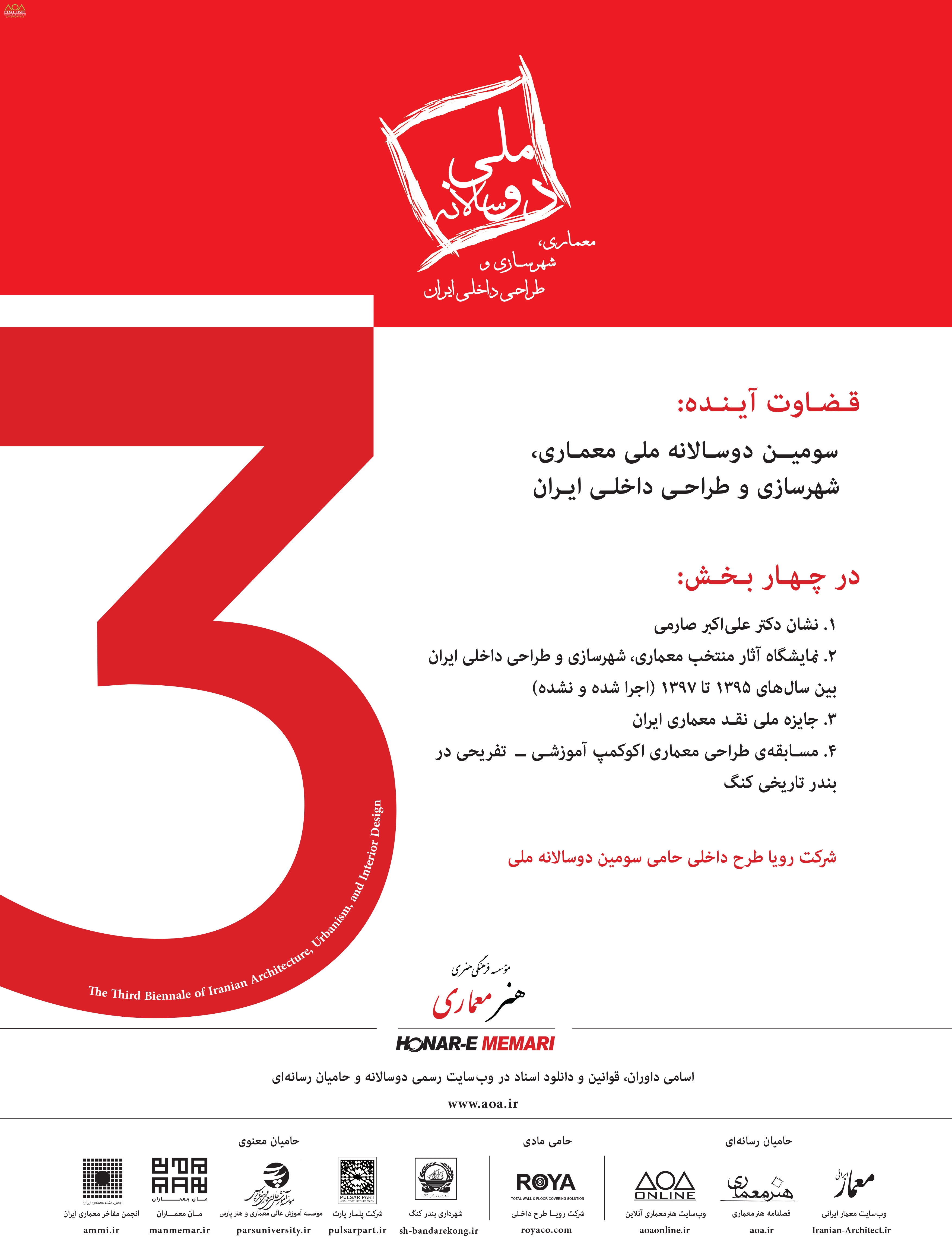 سومين دوسالانه ملي معماري، شهرسازي و طراحي داخلي ايران در ۴ بخش اعلام فراخوان نموده است: