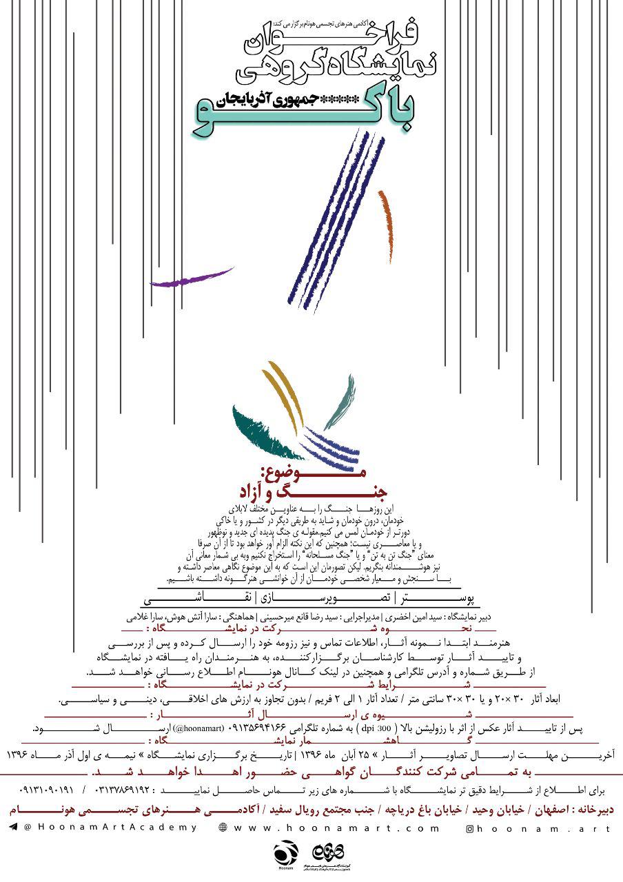 شرايط شركت در نمايشگاه: ابعاد آثار ٢٠*٣٠ و يا ٣٠*٣٠ سانتى متر/ تعداد آثار ١ الى ٢ فريم/ بدون تجاوز به ارزش هاى اخلاقى، دينى و سياسى