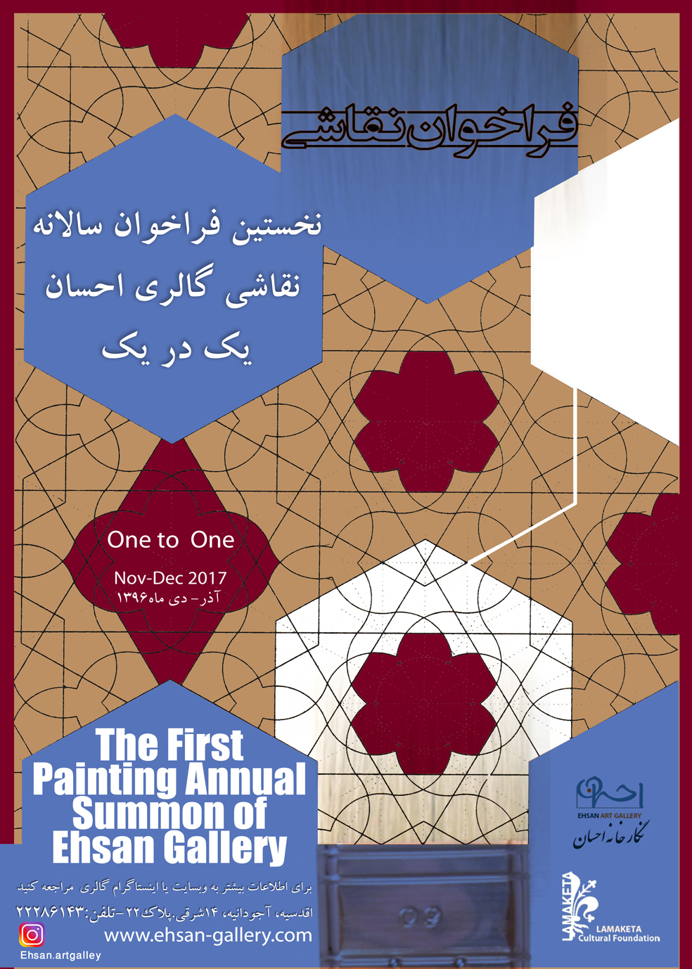 نخستين فراخوان سالانه نقاشي "يک در يک" درگالري احسان از 1آذر 1396 منتشر گرديد.