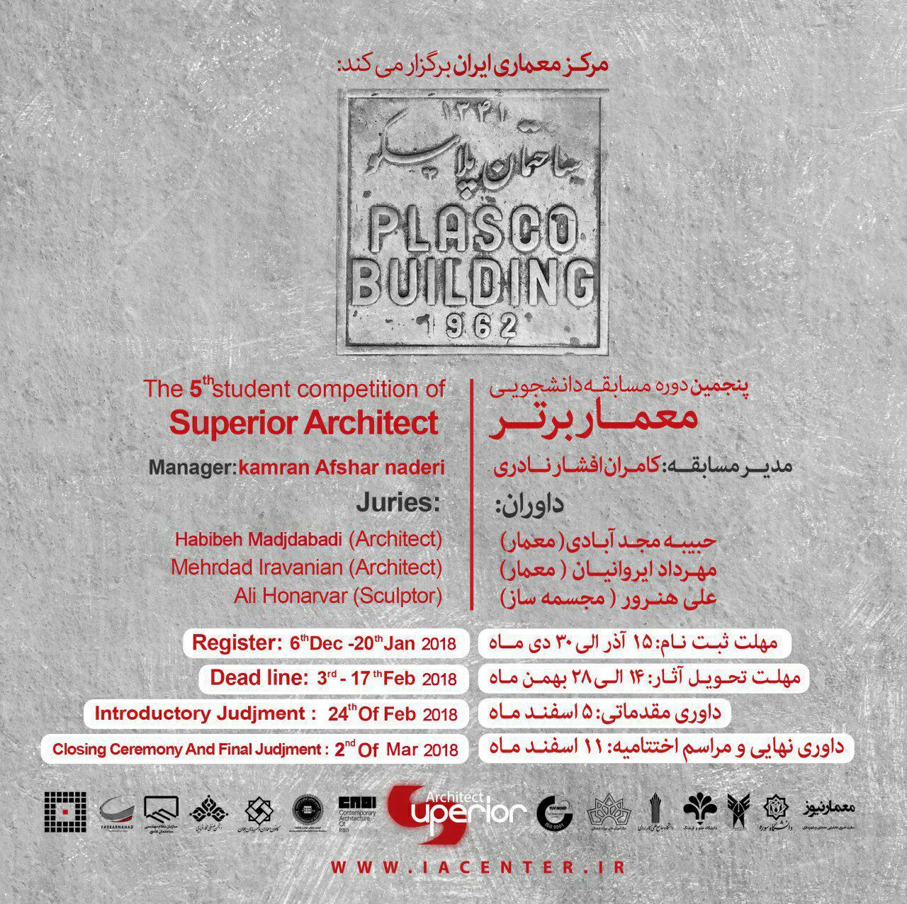 مسابقه معمار برتر با هدف تشويق دانشجويان معماري براي طراحي معماري مبتني بر ايده پردازي و خلاقيت از سال 1392 توسط مرکز معماري ايران و همکاري صاحب نظران معماري و شهرسازي برگزار ميشود.