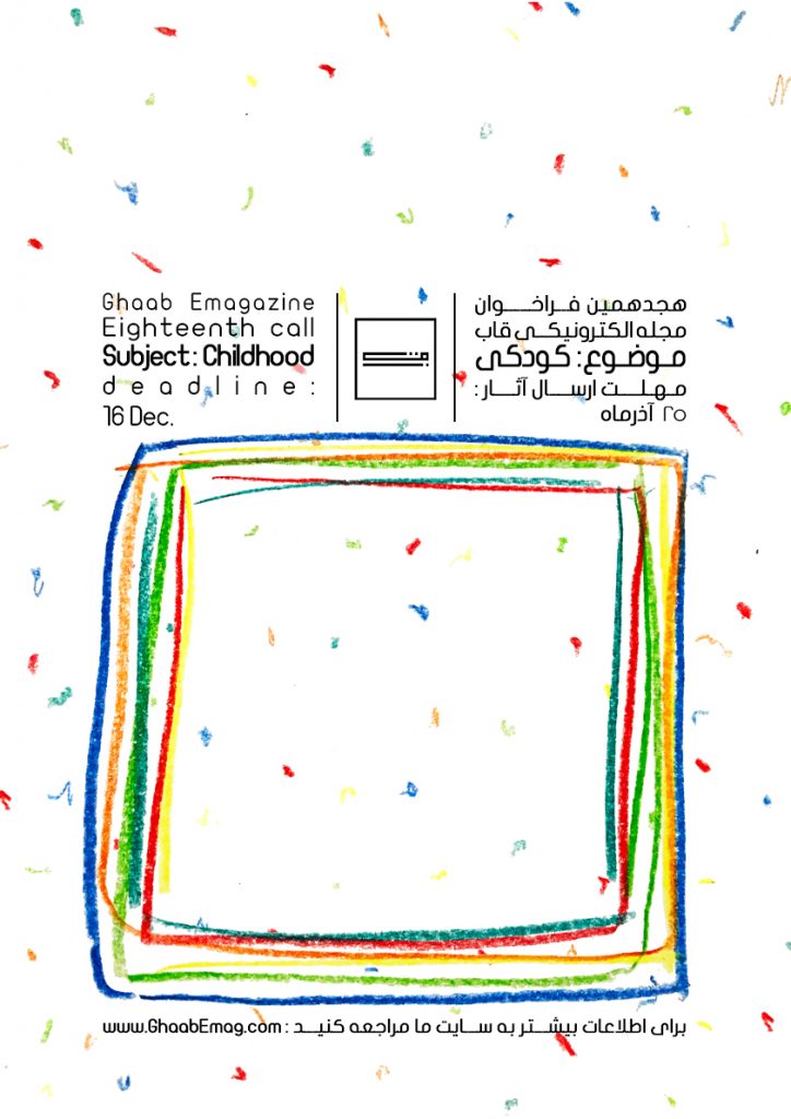 فراخوان مجلهي الکترونيکي قاب بهمنظور ايجاد فضايي براي ارائهي آثار هنرمندها تعريف شده است که هر ماه آثار ارسالشده با توجه به موضوع از پيش تعيينشده (کودکي) از سوي قاب و قوانين مجله منتشر خواهد شد.