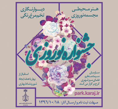 به گزارش گالري آنلاين به نقل از روابط عمومي سازمان سيما، منظر و فضاي سبز شهري شهرداري کرج، به مناسبت فرارسيدن نوروز 1397 اين سازمان در نظر دارد جشنواره نوروزي سال97 را برگزار نمايد. اين جشنواره در قالب طرح استقبال از بهار و با هدف ايجاد شور و نشاط بهاري در شهر از طريق مشارکت هنرمندان و بهمنظور زينت بخشيدن به فضاهاي شهري، طرحريزي شده است. در اين ارتباط از کليه هنرمندان دعوت مي شود، طرحهاي خود را مطابق ضوابط فراخوان، به دبيرخانه جشنواره ارائه نمايند.