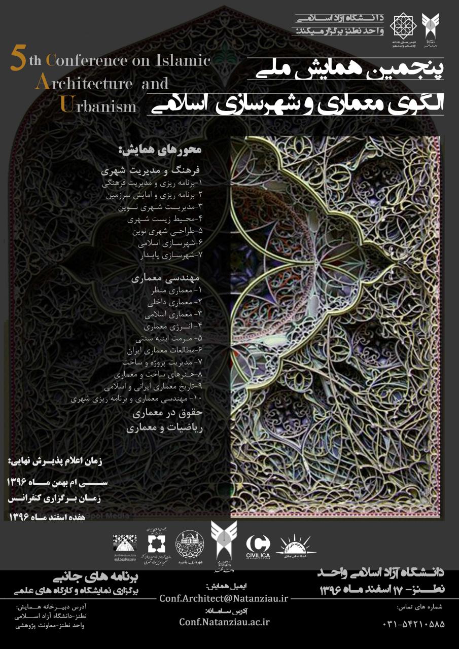 به گزارش گالري آنلاين به نقل از روابط عمومي همايش، پنجمين همايش الگوي معماري و شهرسازي اسلامي با توجه به برگزاري موفق 4 دوره از اين همايش ملي براي اسفند ماه سال جاري در حال برنامه ريزي مي باشد . با توجه به سابقه تاريخي و قدمت شهر نطنز ، اين شهر بستر مناسبي جهت برگزاري اين همايش بوده است. دانتشگاه ازاد اسلامي واحد نطنز با توجه به داير بودن دوره کارداني ، کارشناسي و کارشناسي ارشد معماري و تاکيد بر لزوم توجه به اصول و معيار هاي معماري ايراني و اسلامي توانسته است در چهار دوره قبل گام هاي موثري بر ارتقا کيفي اموزش در اين راستا بردارد. اميد است با عنايات حق تعالي در سال جاري به برگزاري باشکوه تر پنجمين دوره از همايش نائل اييم.