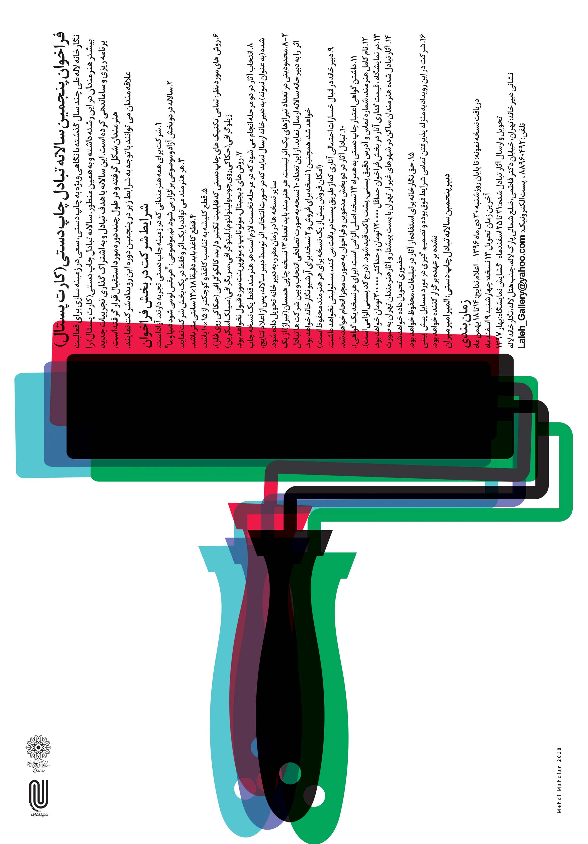 گفتني است اين رويداد در طي برگزاري چهار دوره گذشته تاکنون علاقه مندان زيادي را به خود جلب نموده و مورد استقبال مخاطبان قرار گرفته است. از اين رو نگارخانه لاله در پنجمين سال متوالي، فراخوان اين سالانه را منتشر مي نمايد. علاقه مندان مي توانند با توجه به شرايط زير در پنجمين سالانه تبادل چاپ دستي (کارتپستال) شرکت نمايند.